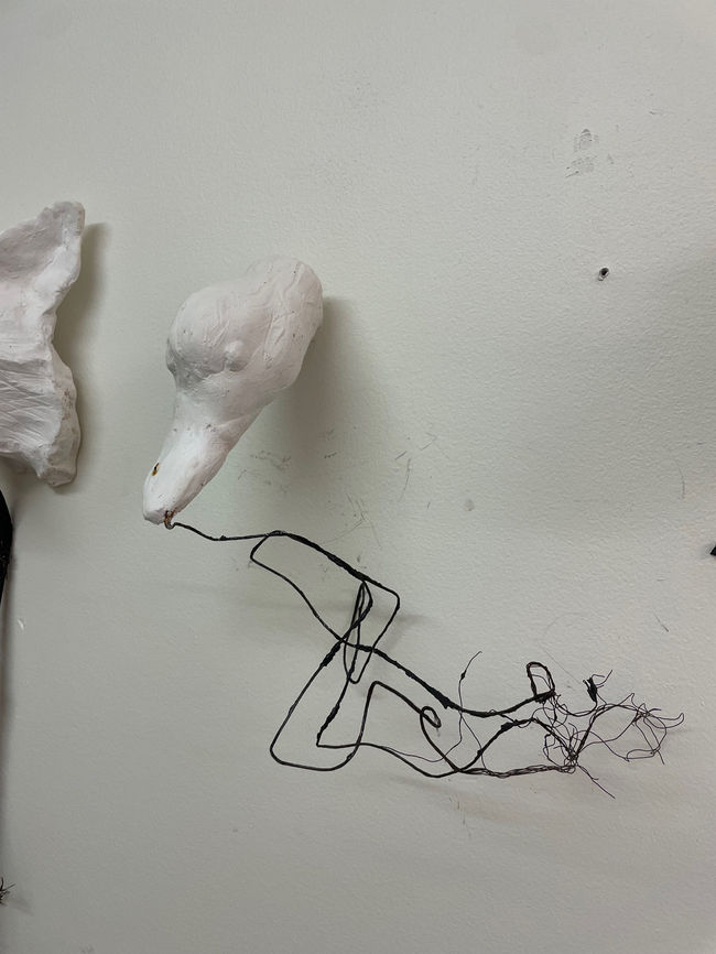 Victims encountered during my commute and travels in NC led me to contemplate the relationship between humanity and nature. A death mask was traditionally a plaster cast made from the face of the deceased as a way to memorialize the dead. I gravitated toward the death mask as my medium to memorialize and honor the animals depicted, and to elevate them from roadkill to beings worthy of our contemplation and respect. The tire fragments act as abstract sculptural elements, as well as tangible reminders of the cause of their deaths. We become desensitized, and my hope is to encourage the viewer to see with new eyes, and also promote the importance of solutions, such as wildlife crossings, and habitat and biodiversity conservation.